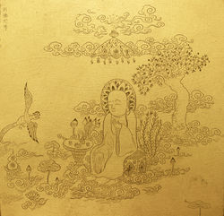 ![]() 曾杨 | Zeng Yang 阿弥陀佛无量寿世界A 绢本,纯金箔,刻绘 100X150CM 2016 | ![]() 曾杨 | Zeng Yang 阿弥陀佛无量寿世界C 绢本,纯金箔,刻绘 60X80CM 2016 | ![]() 曾杨 | Zeng Yang 阿弥陀佛无量寿世界D 绢本,纯金箔,刻绘 60X80CM 2016 |
